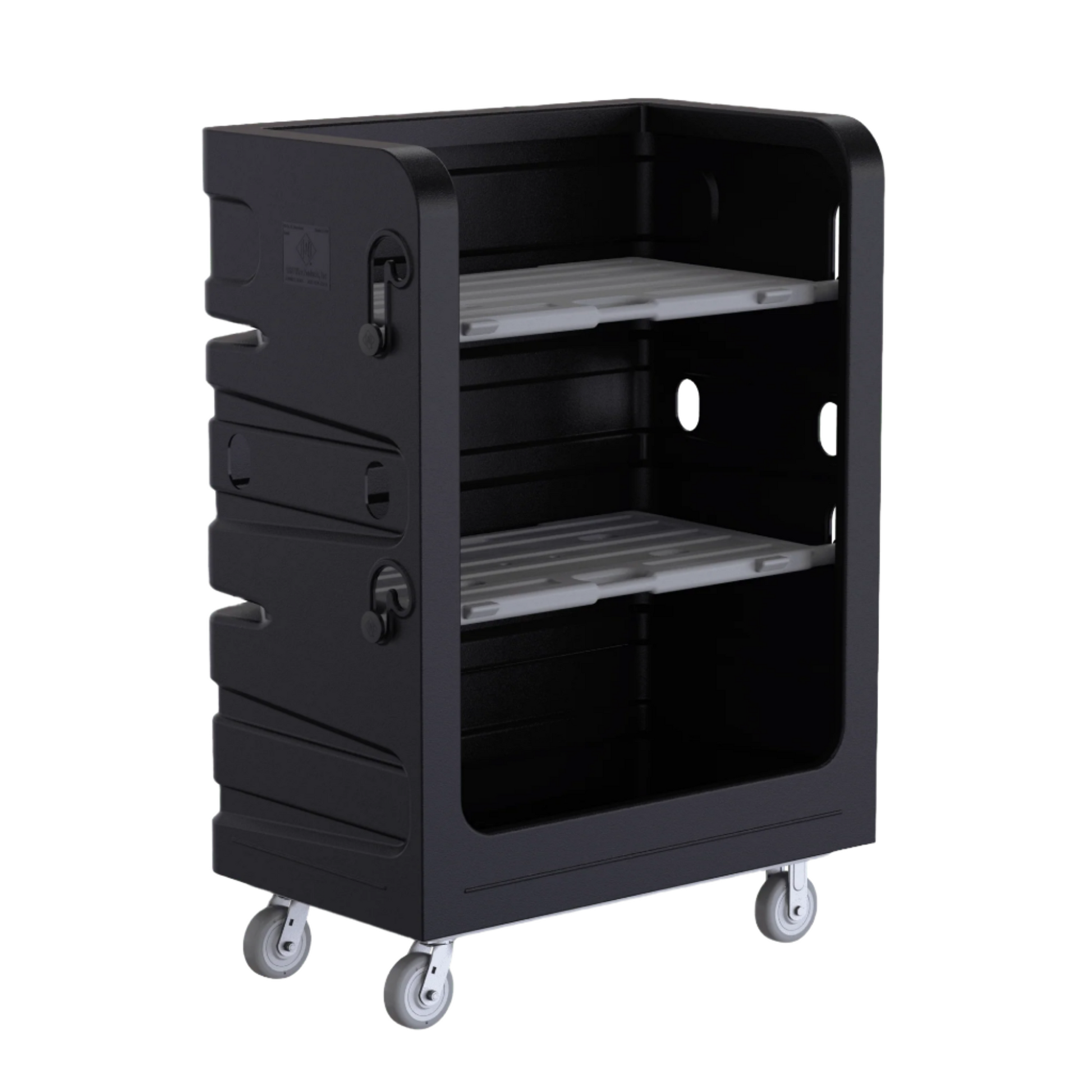 - Ergonomic design allows the user to easily slide the shelves from horizontal to vertical positions - transforming the unit from delivering clean linen to collecting soiled linen