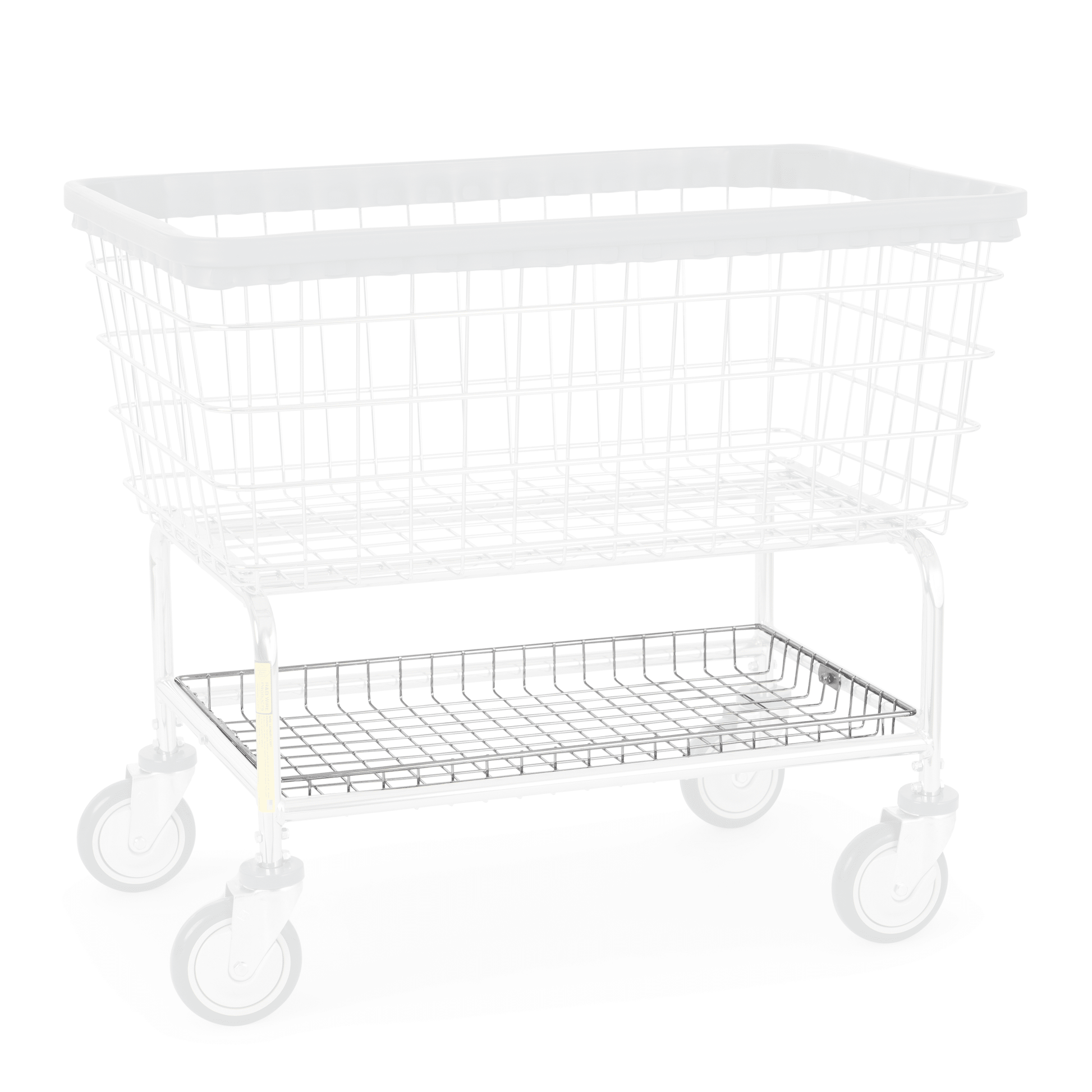 R&B offers the convenience of a chrome bottom shelf that will work with all of our 200 & 201 series wire laundry carts. The design allows for additional storage at the bottom of the cart.