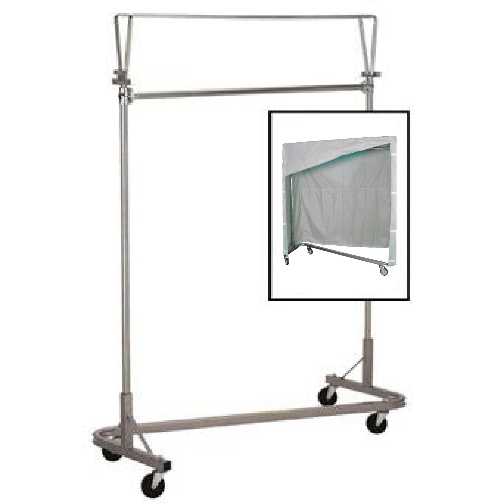 This neat and clean protective nylon cover system includes the heavy-duty zinc plated steel support frame and flame retardant cover made from 200 denier urethane coated nylon. This item is specially designed to fit the 735 garment rack.